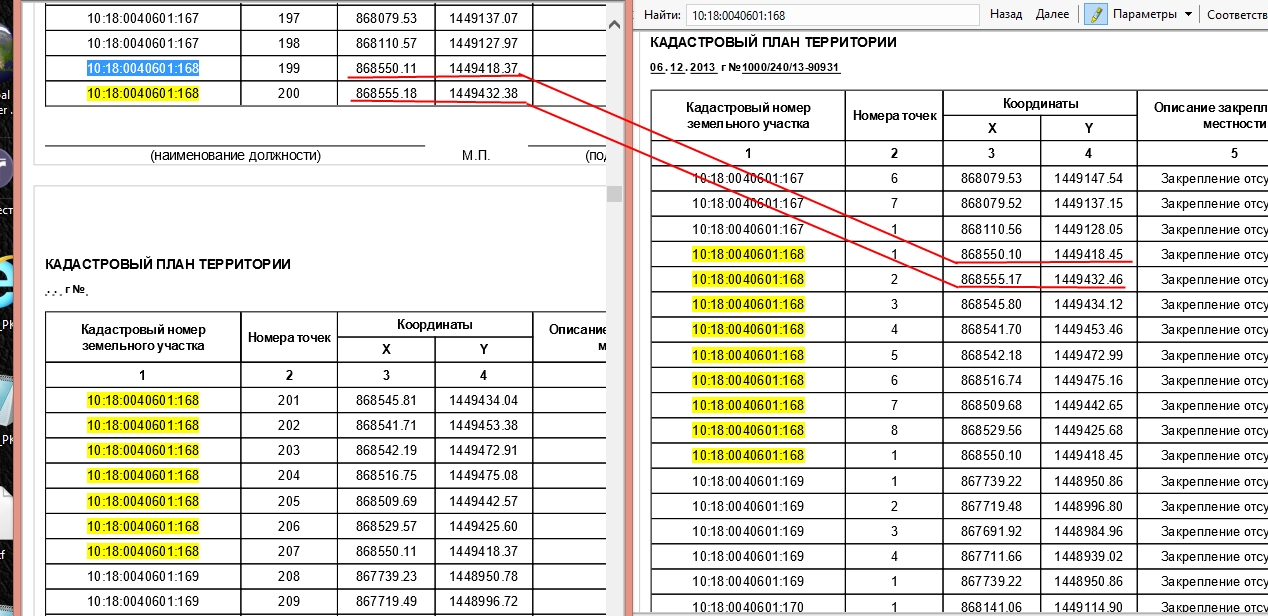 вот это может быть подтверждением? <Placemark> <name>10:11:0030701:215</name> <MultiGeometry> <LinearRing> <coordinates>33.9948851892031,64.4144649432808,0 33.9938495842143,64.4144376730095,0 33.9938121026889,64.4147062026666,0 33.9948473035894,64.4147334788273,0 33.9948851892031,64.4144649432808,0</coordinates> </LinearRing> </MultiGeometry> </Placemark> <Placemark> <name>10:11:0030701:216</name> <MultiGeometry> <LinearRing> <coordinates>33.9948851892031,64.4144649432808,0 33.9949230764617,64.4141964081839,0 33.9938878952996,64.4141691321996,0 33.9938495842143,64.4144376730095,0 33.9948851892031,64.4144649432808,0</coordinates> </LinearRing> </MultiGeometry> </Placemark> <Placemark> <name>10:11:0030701:217</name> <MultiGeometry> <LinearRing> <coordinates>33.9949230764617,64.4141964081839,0 33.9949609598823,64.4139278728263,0 33.9939257918791,64.4139005972854,0 33.9938878952996,64.4141691321996,0 33.9949230764617,64.4141964081839,0</coordinates> </LinearRing> </MultiGeometry> </Placemark> <Placemark> <name>10:11:0030701:218</name> <MultiGeometry> <LinearRing> <coordinates>33.9949609598823,64.4139278728263,0 33.9950069069765,64.4136036854384,0 33.9939537940508,64.4136882769078,0 33.9939257918791,64.4139005972854,0 33.9949609598823,64.4139278728263,0</coordinates>