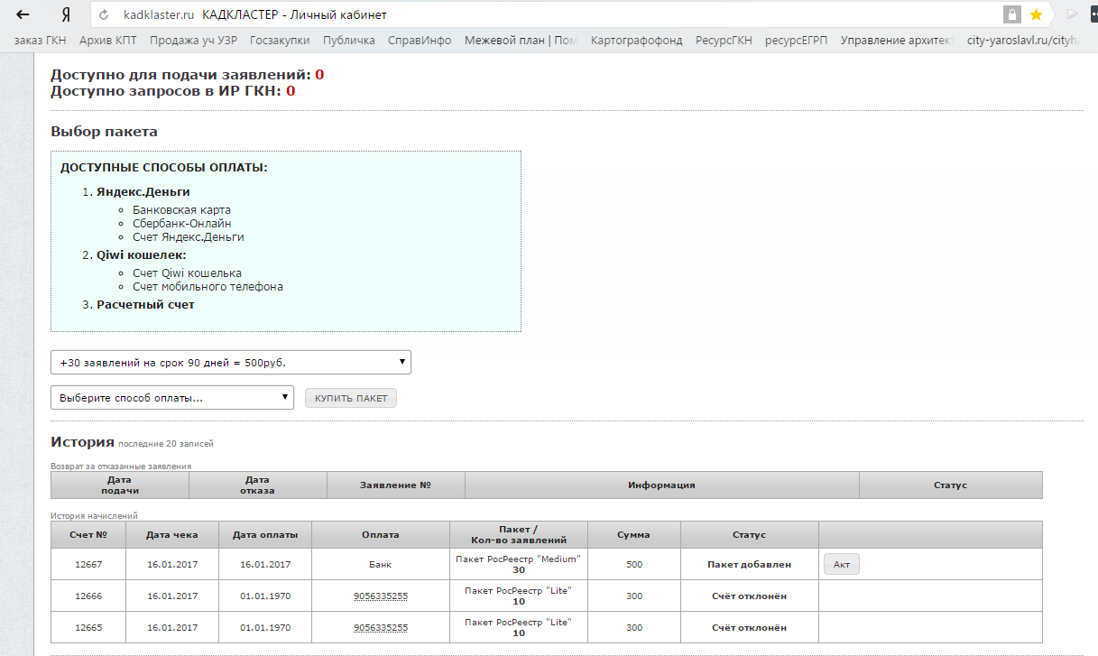 Добрый день! Произвели оплату по счету № 12724/У от 18.07.2017, а доступных заявлений ноль, в чем дело?