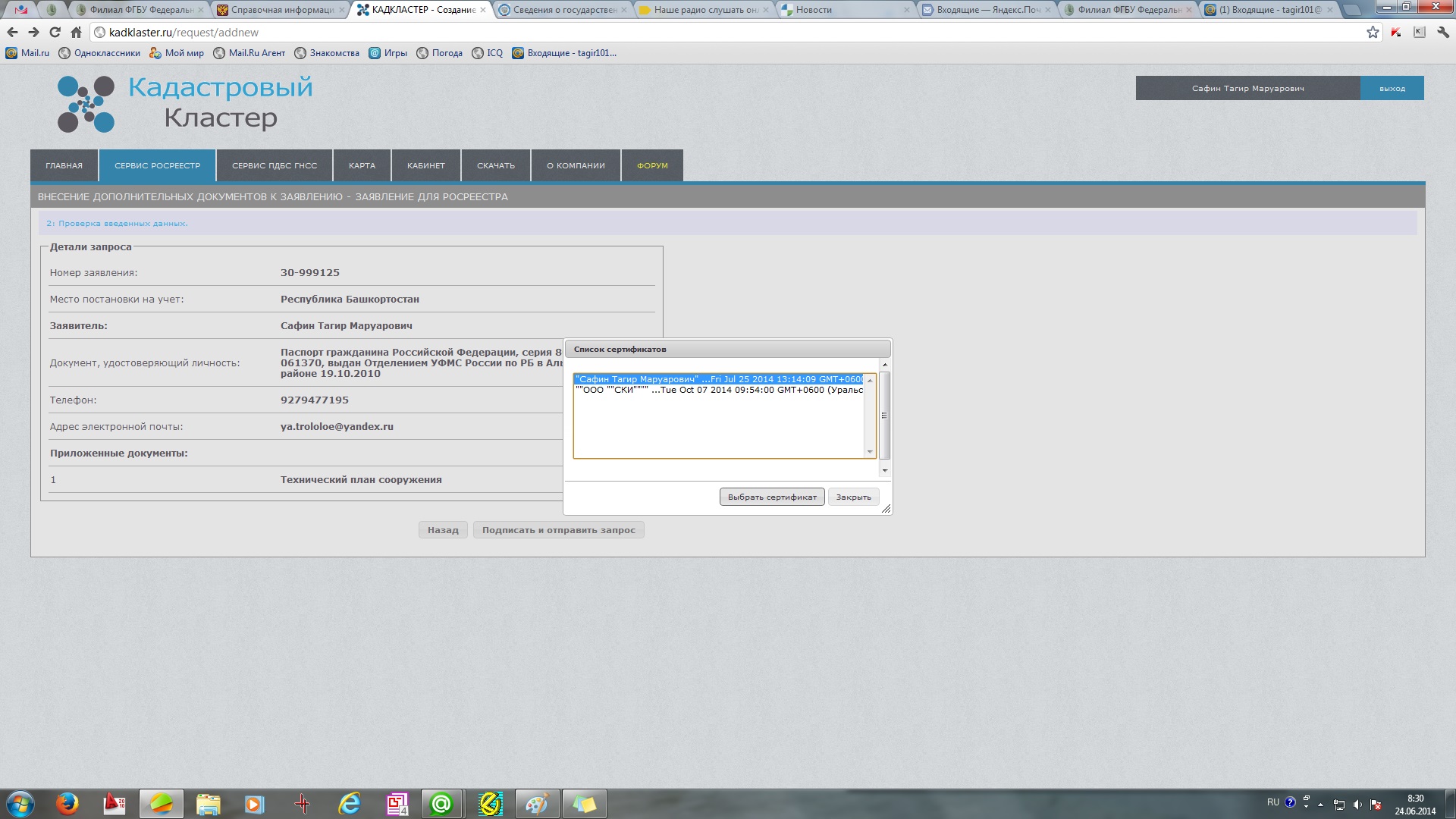 Я хочу подписать пользовательское соглашение для дальнейшей работы с росреестром